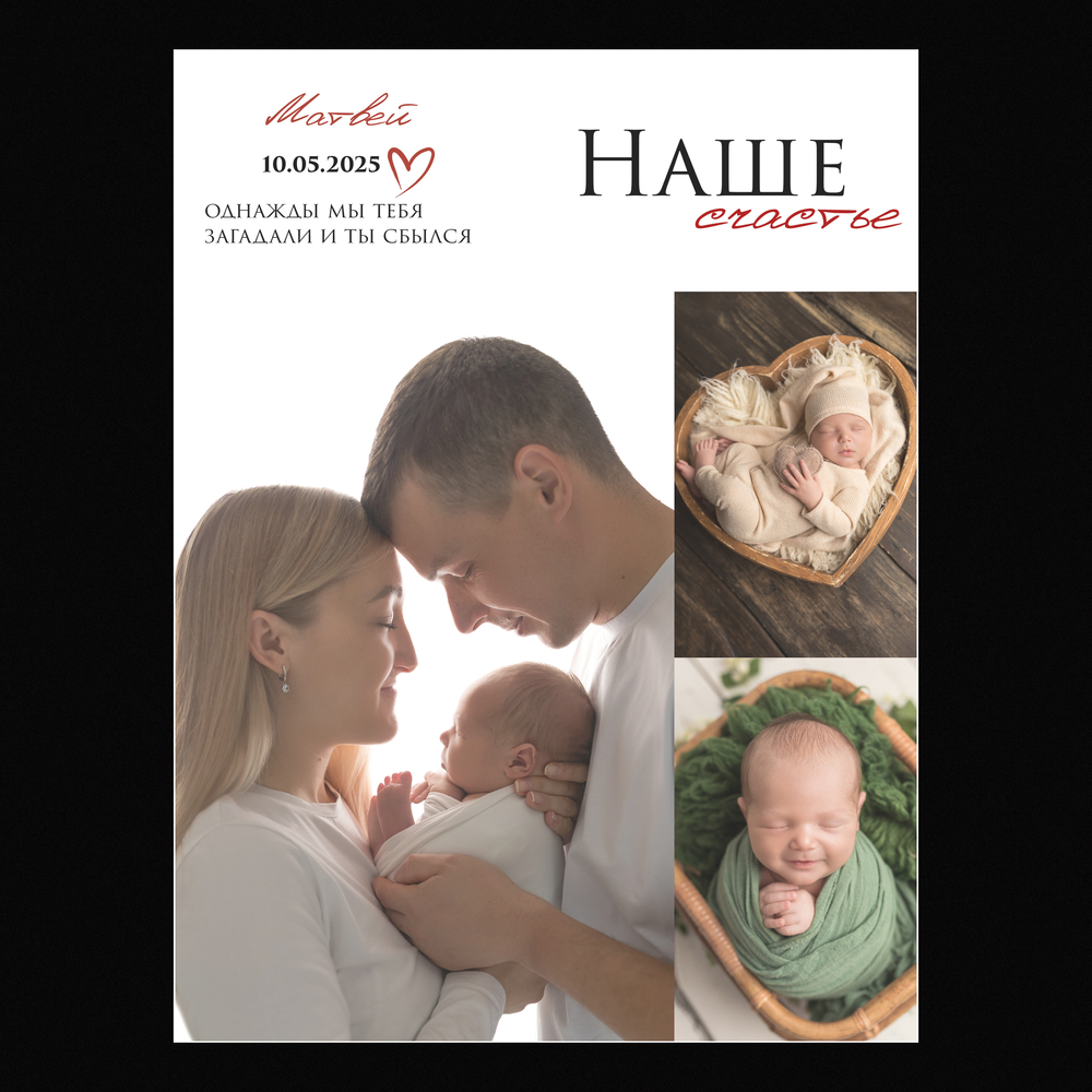 Вы заказываете персонализированный макет метрики — визуальный проект на основе нашего дизайнерского шаблона, дополненный вашими фотографиями и данными.