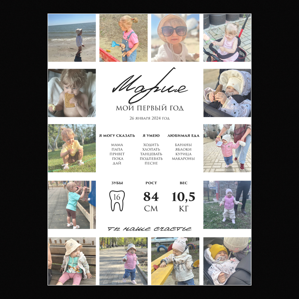 Вы заказываете персонализированный макет метрики — визуальный проект на основе нашего дизайнерского шаблона, дополненный вашими фотографиями и данными.